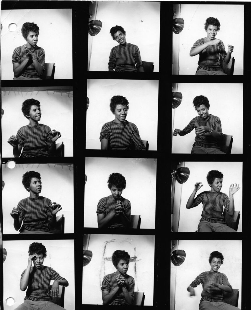 David Attie, contact sheets of Lorraine Hansberry portrait session, 1959. David Attie/Archive Photos via Getty Images.