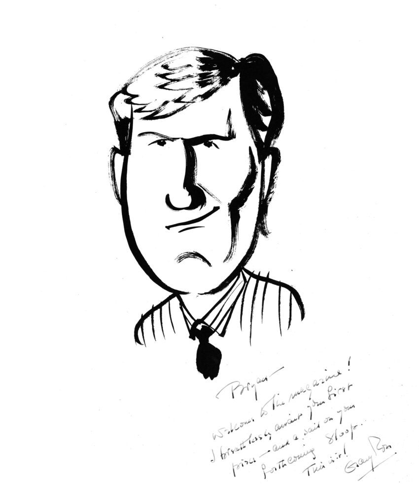 A caricature of the author with a note from Graydon Carter that reads: “Bryan—Welcome to the magazine! I breathlessly await your first piece—and a sail on your forthcoming Sloop. This is it! Graydon." Courtesy the author