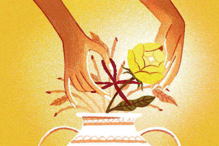 But as I thought about how we care for one another, this image of my friend pleading with me to hit him kept floating through my head. Why? I thought at first maybe the memory was about the chaos of pain—the way that sometimes when you’re suffering for reasons that feel hard to describe, you go looking for a more legible, straightforward kind of pain. But the part of the story that I return to isn’t the punch; it’s the fact that I covered my eyes.