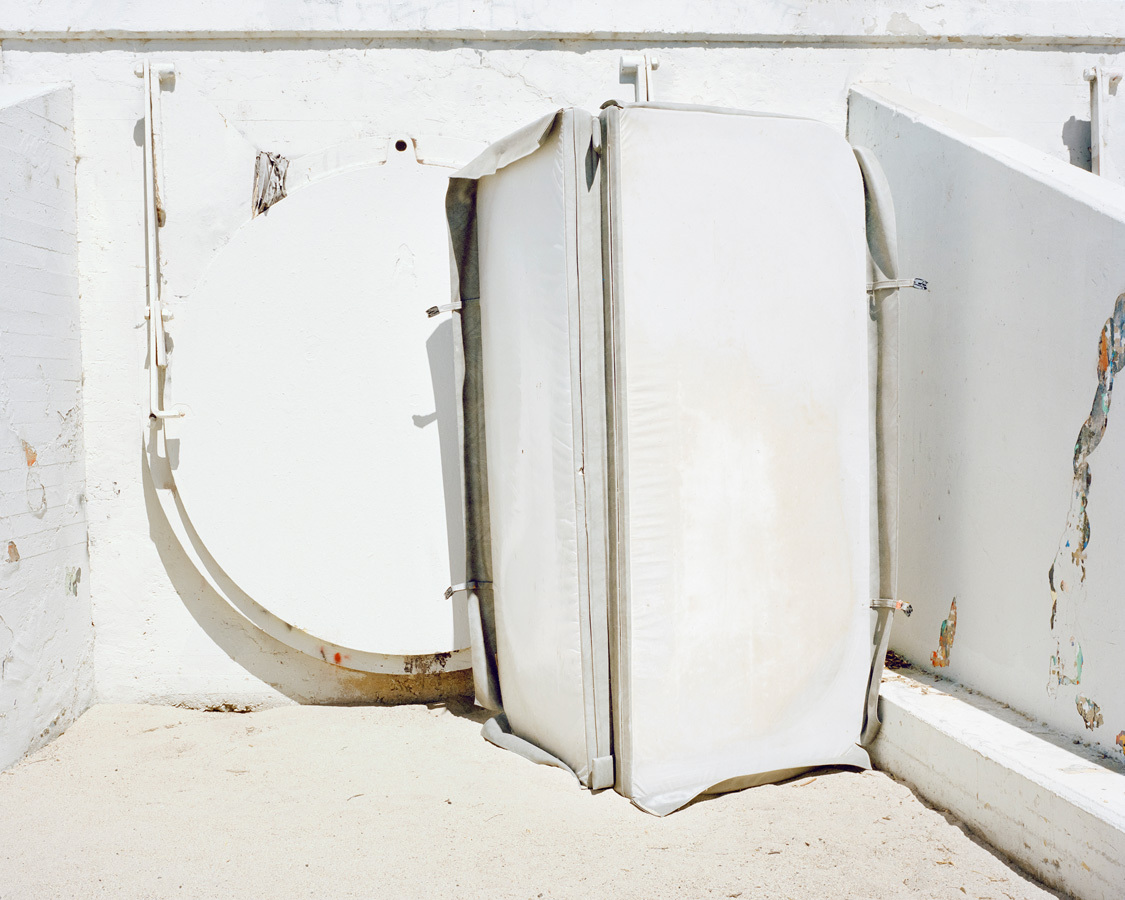 The project extends the initial act of speculation that was the building of the channel. What is unearthed by the human effort to shape the surface of the land? What is the fate of a new species of river—part geological, part engineered? Shifting point of view and scale, the photographs present a terrain cobbled together from ill-fitting parts. Color is acute or entirely absent. Light erases information and obscures orientation. Gravity misbehaves, and seasons are out of order. The dislocation of the viewer is both spatial and temporal.